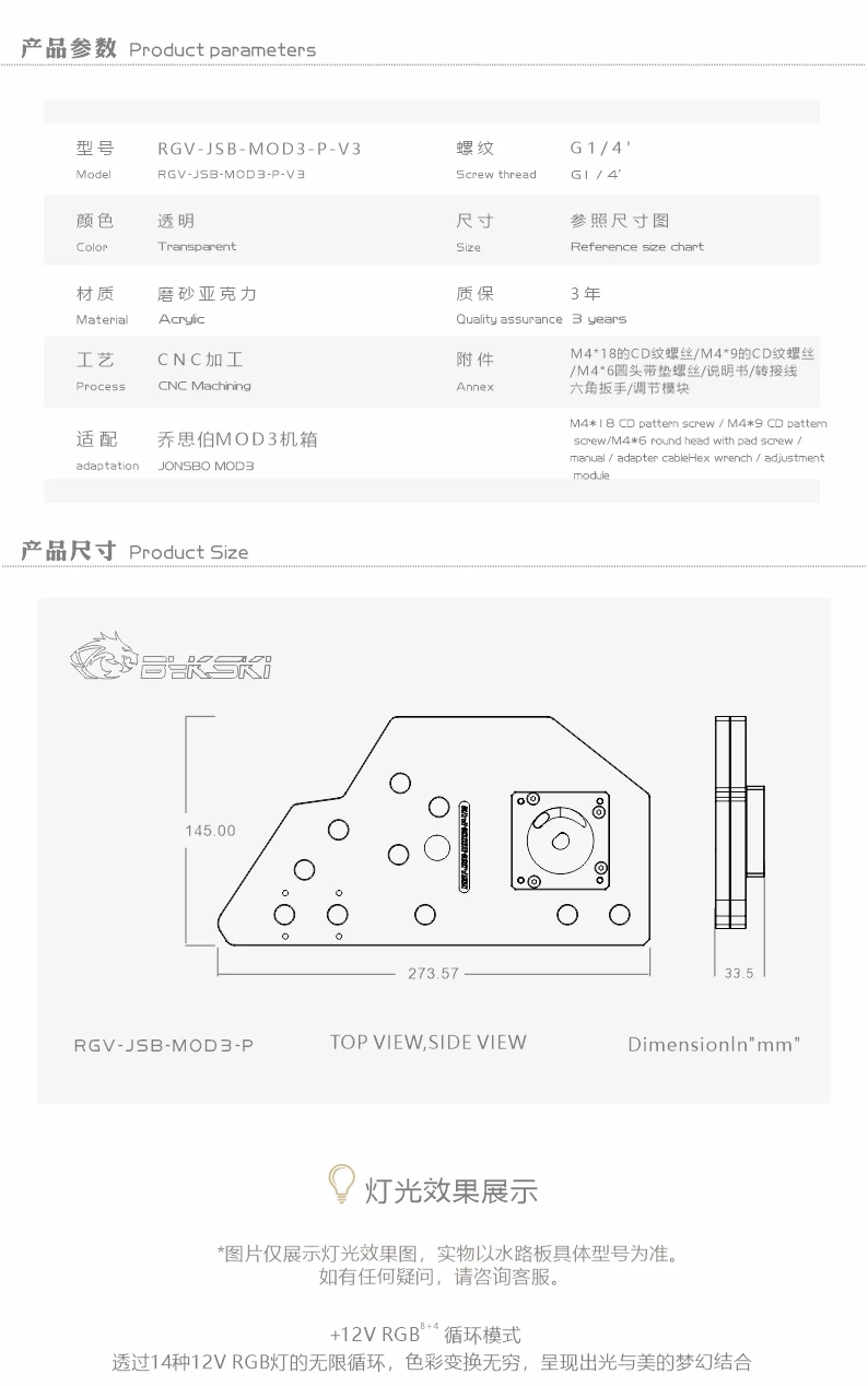 Product Name: Bykski Acryl Bord Wasser Für JONSBO MOD3 Computer Fall PC Kühlung Kühler A-RGB / RGB Licht Streifen